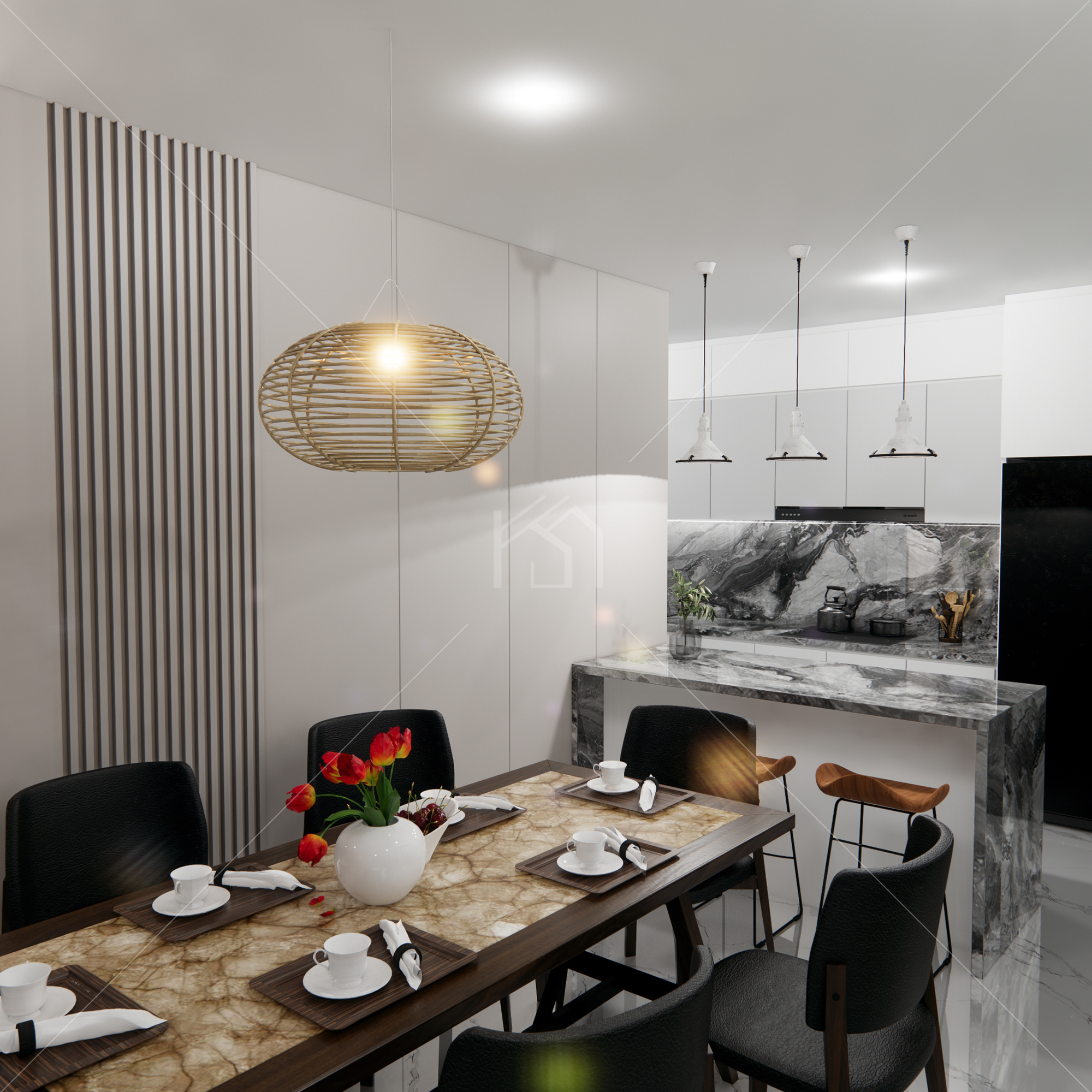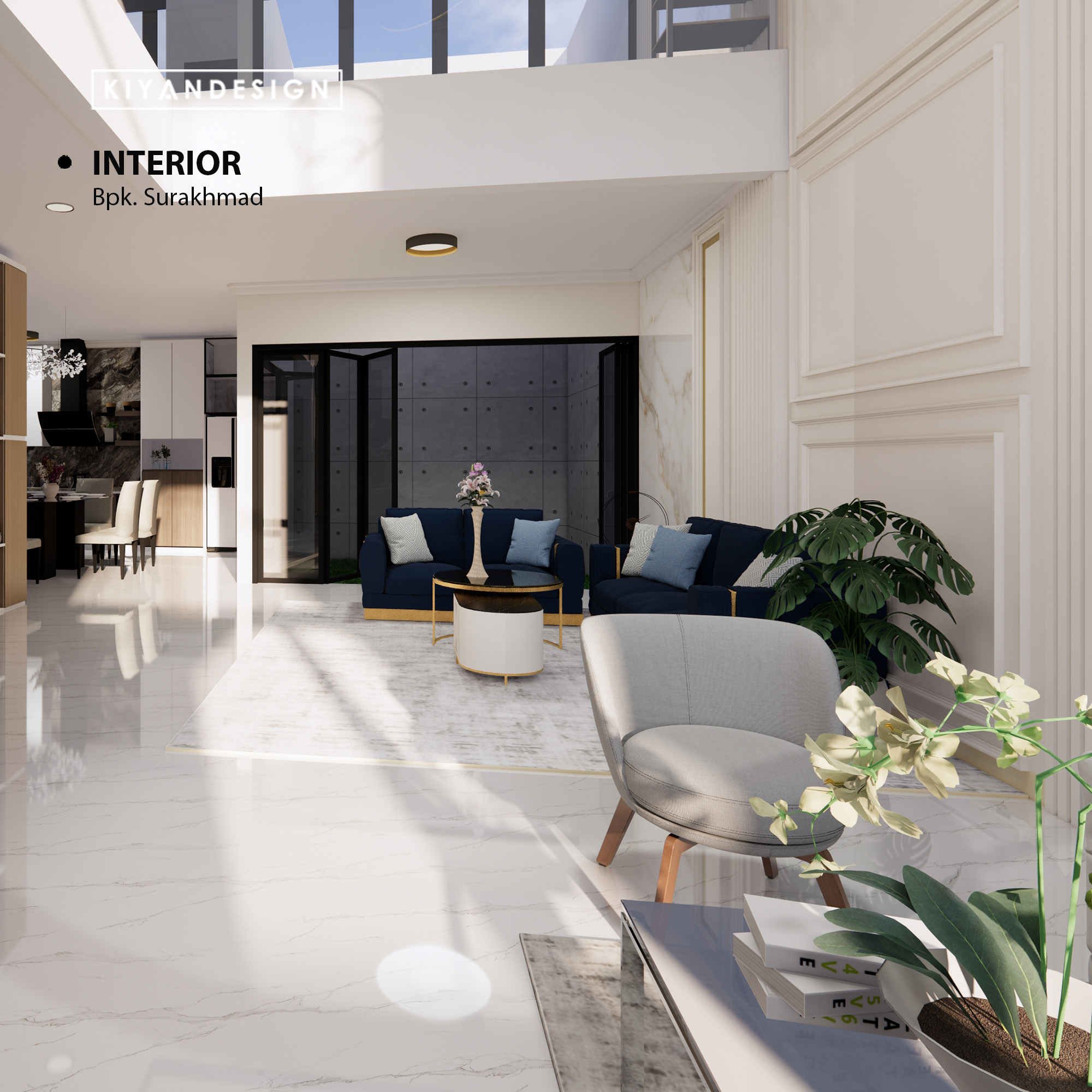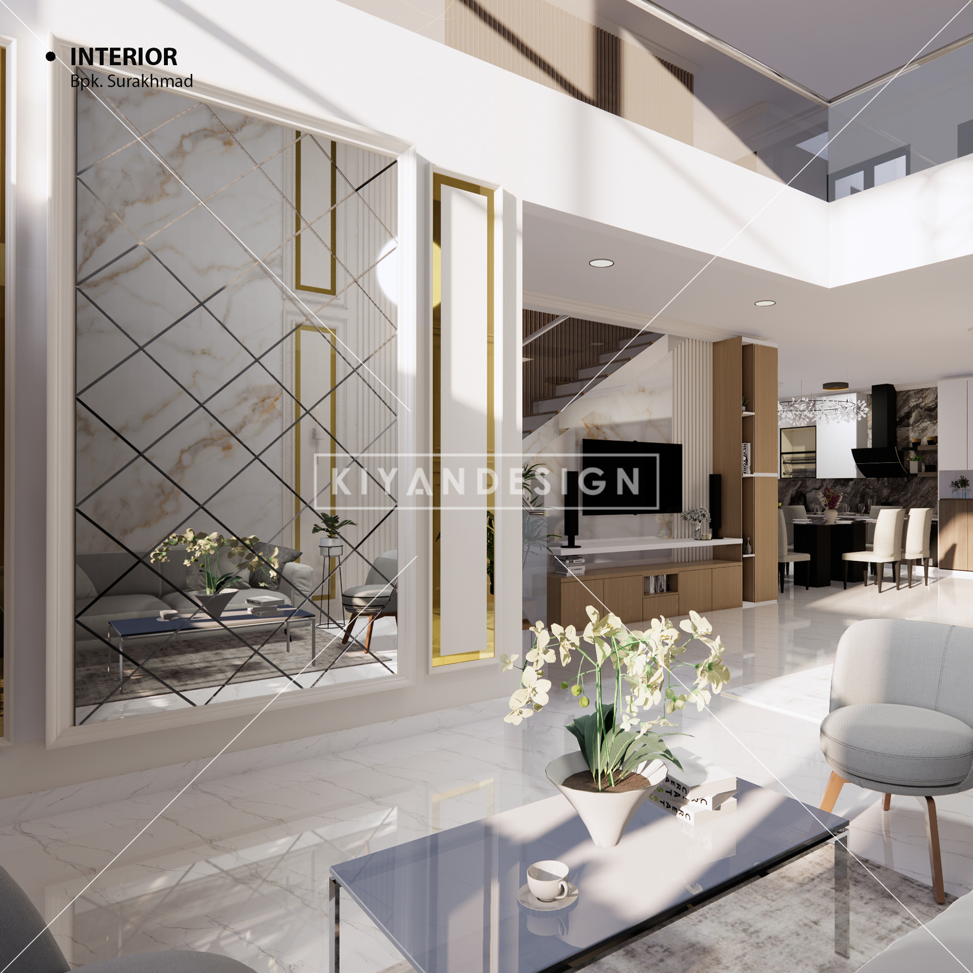 Desain interior rumah adalah proses merancang dan mengatur elemen-elemen dalam ruang interior rumah untuk menciptakan suasana yang fungsional, estetis, dan nyaman. Termasuk pemilihan furnitur, tata letak, pencahayaan, warna dinding, bahan lantai, tekstil, serta elemen dekoratif lainnya, yang semuanya dipadukan untuk menciptakan ruang yang sesuai dengan kebutuhan dan preferensi penghuni rumah.